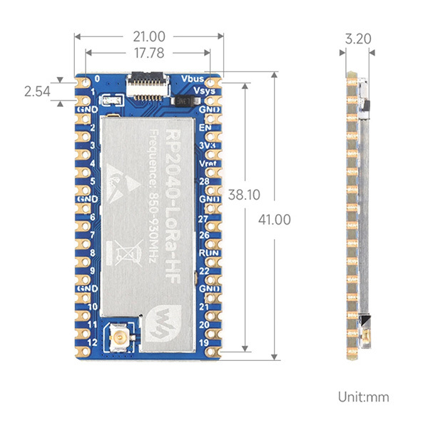 RP2040-LoRa 是使用新一代 SX1262 射頻晶片的 LoRa 開發板,在功耗傳輸距離電源效率等性能上比 SX127X 系列表現更好,LoRa 調製技術解決了傳統設計方案無法同時兼顧距離、抗干擾和功耗的問題。此外,結合 LoRa 網關,可存取 TTN,ChirpStack 等伺服器,方便快速驗證 LoRa 網路雲端服務。主機板提供 LF 和 HF 兩種頻段版本可選擇。