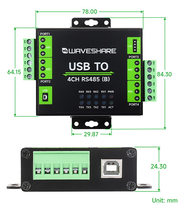 4路RS485可同時通信,相互獨立,板載RS485輸出終端120R電阻,可開關切換使能,傳輸穩定,多設備適用