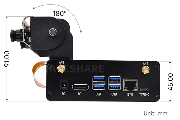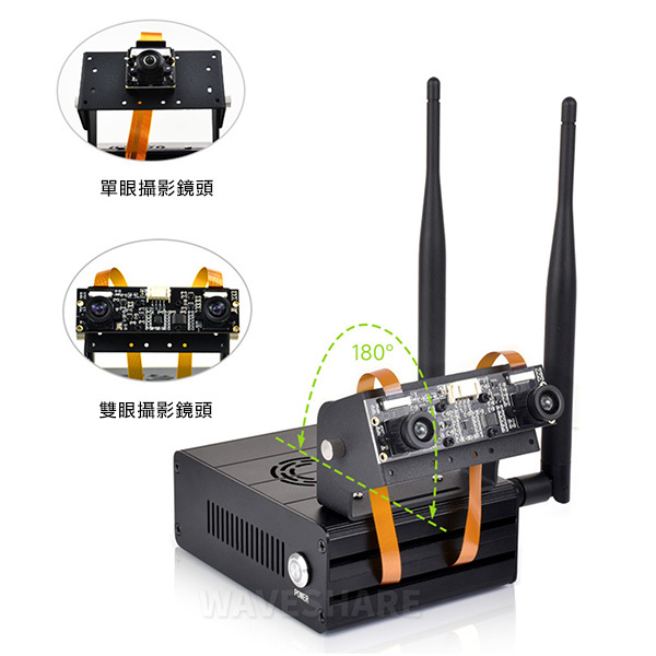 孔位支援安裝單眼或雙目攝影機,支援 180° 角度旋轉設置
