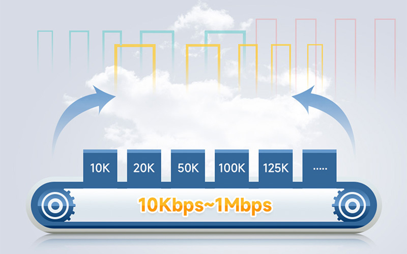 CAN 通訊波特率,10Kbps~1Mbps 範圍可選,可透過設定工具進行波特率計算、自動幀測波特率、設定波特率