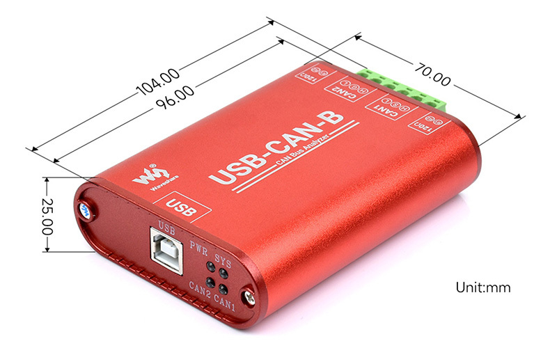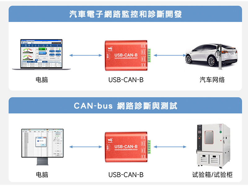 採用高速 USB2.0 接口,可相容於 USB 1.1 和 USB 3.0;搭載兩路 CAN 總線接口,支援雙向傳輸,可同時獨立工作,互不影響