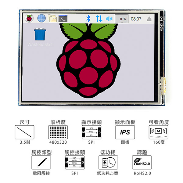 支援Raspbian / Ubuntu MATE / Kali / Retropie,提供驅動支援FBCP軟體驅動,可設定軟體解析度和雙螢幕顯示