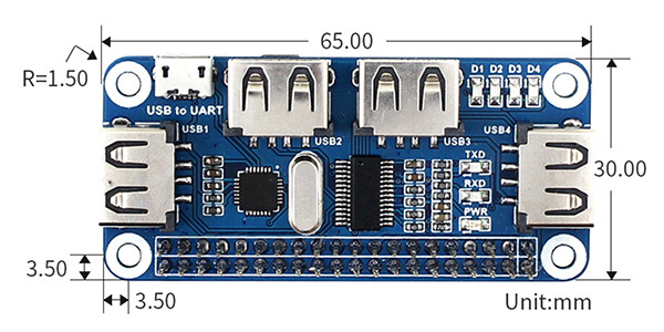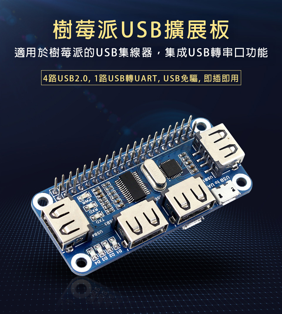 | 連接到Raspberry Pi 的USB接口 | (8)FE1.1S USB HUB晶片 |