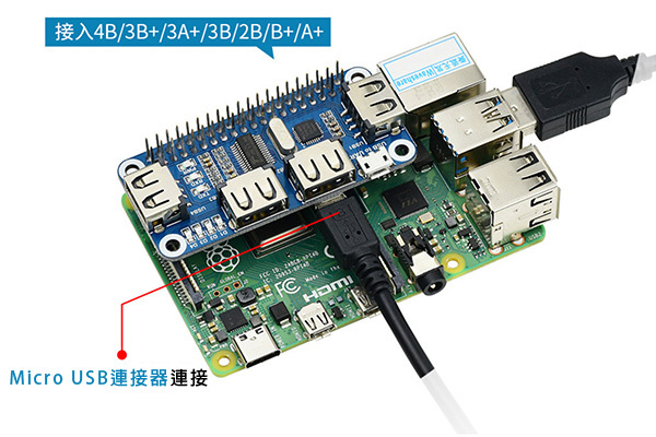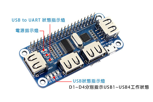 | (1)Raspberry Pi GPIO接口 | (5)USB狀態指示燈 |