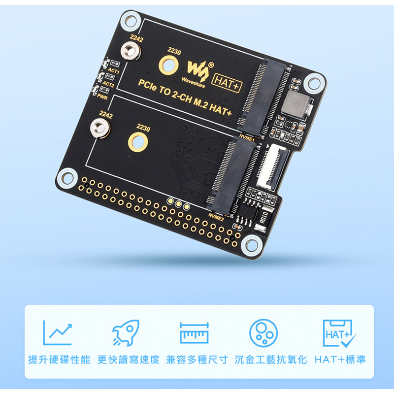 相容於2230/2242尺寸的M.2硬碟,沉金製程抗氧化,HAT+標準