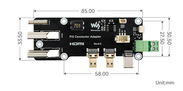 | 2 | 雙Micro HDMI公頭 | 連接PI的HDMI接口 |