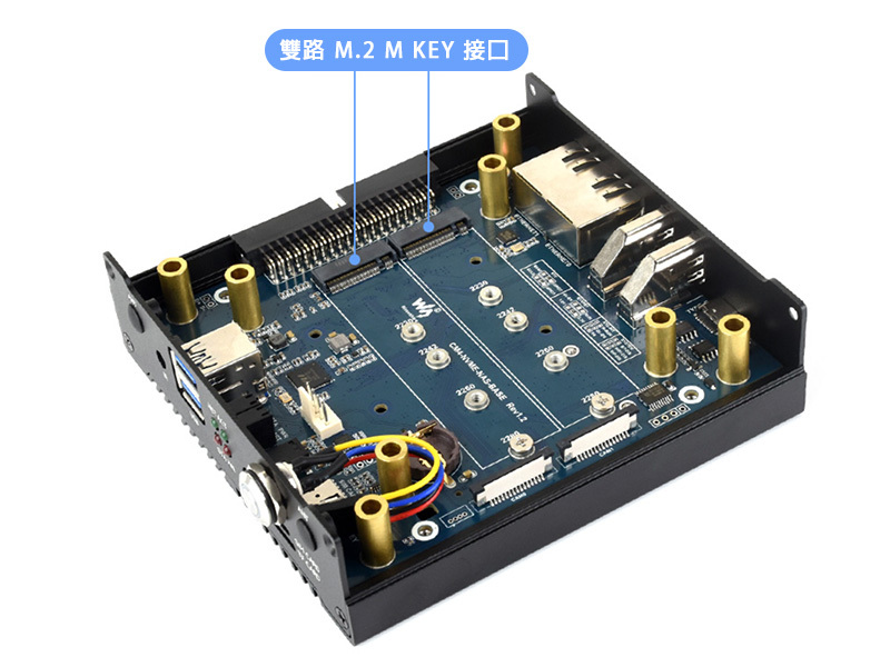 板載雙路 M.2 M KEY 接口,支援全尺寸 NVME 固態硬碟(2230、2242、2260、2280)