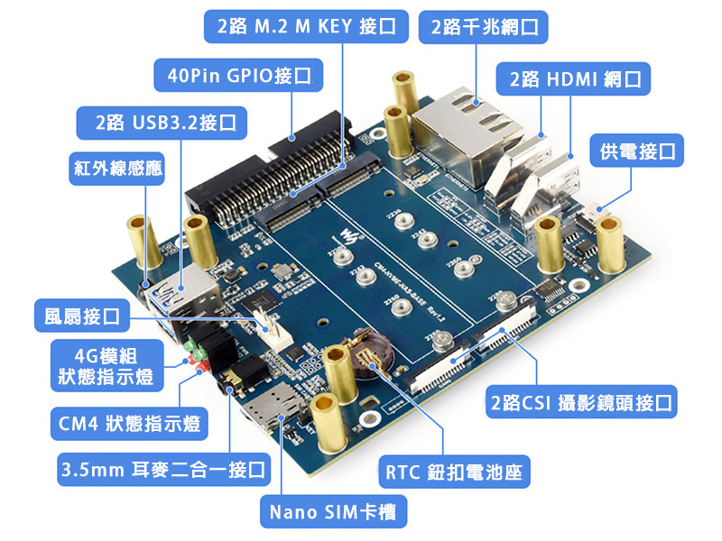 | CM4 卡座 | 適用於 Compute Module 4 所有版本 |