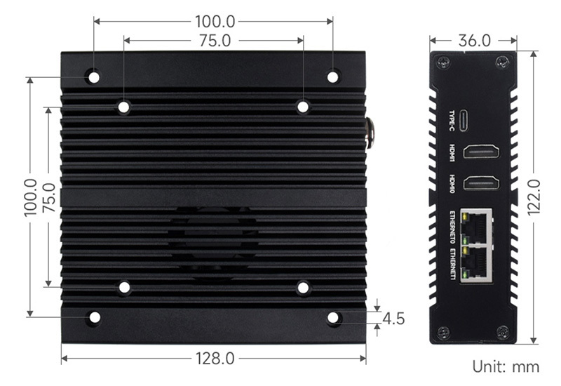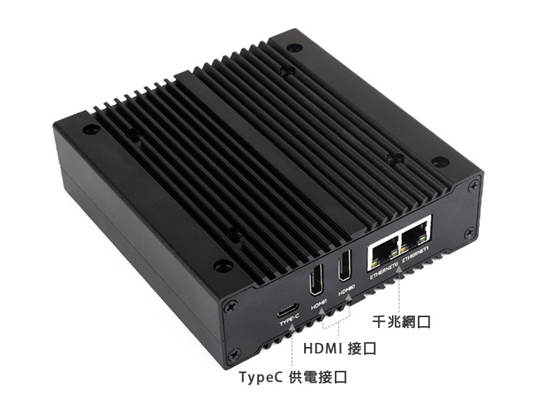 | 聯網 | 千兆乙太網路 RJ45 介面 × 2 (原生網路埠 ETH0、PCIE 擴充網路埠 ETH1) MINI PCIE,支援 4G 模組(USB 協議,不支援 PCIE 協議) Nano-SIM 卡槽,可接入標準 Nano-SIM 卡,用於 4G/3G/2G 上網 |