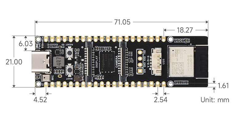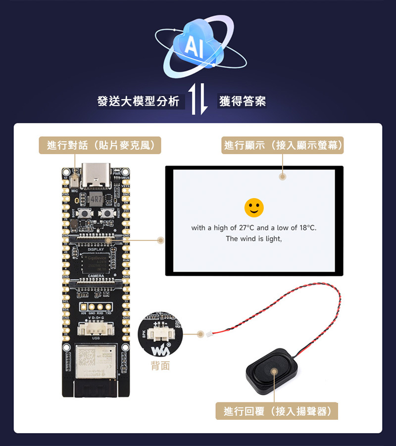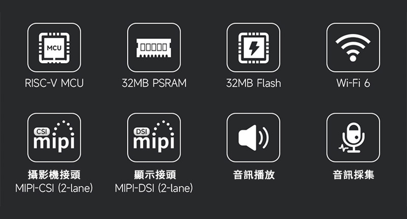 | ESP32-P4 疊封 32MB PSRAM | MX1.25 2P 連接器,支援 8Ω 2W 喇叭 | ||