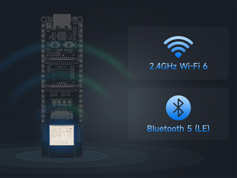 板載 ESP32-C6 晶片,為 ESP32-P4 拓展了 2.4GHz Wi-Fi 6 和Bluetooth 5/BLE,使用 SDIO 介面協定通信,穩定連接、有效率地傳輸