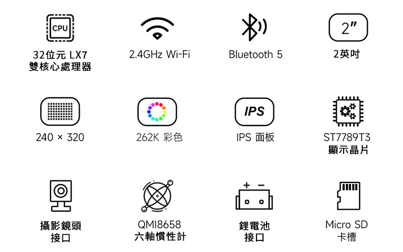 | 顯示面板 | IPS LCD | 顯示尺寸 | 2 inch |