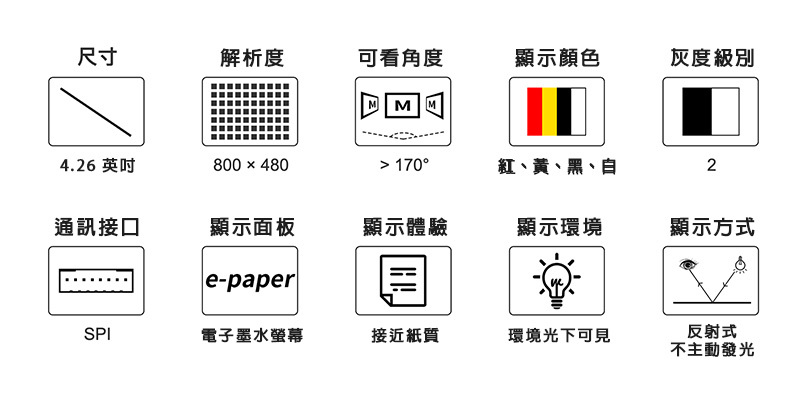 | 顯示顏色 | 紅、黃、黑、白 |