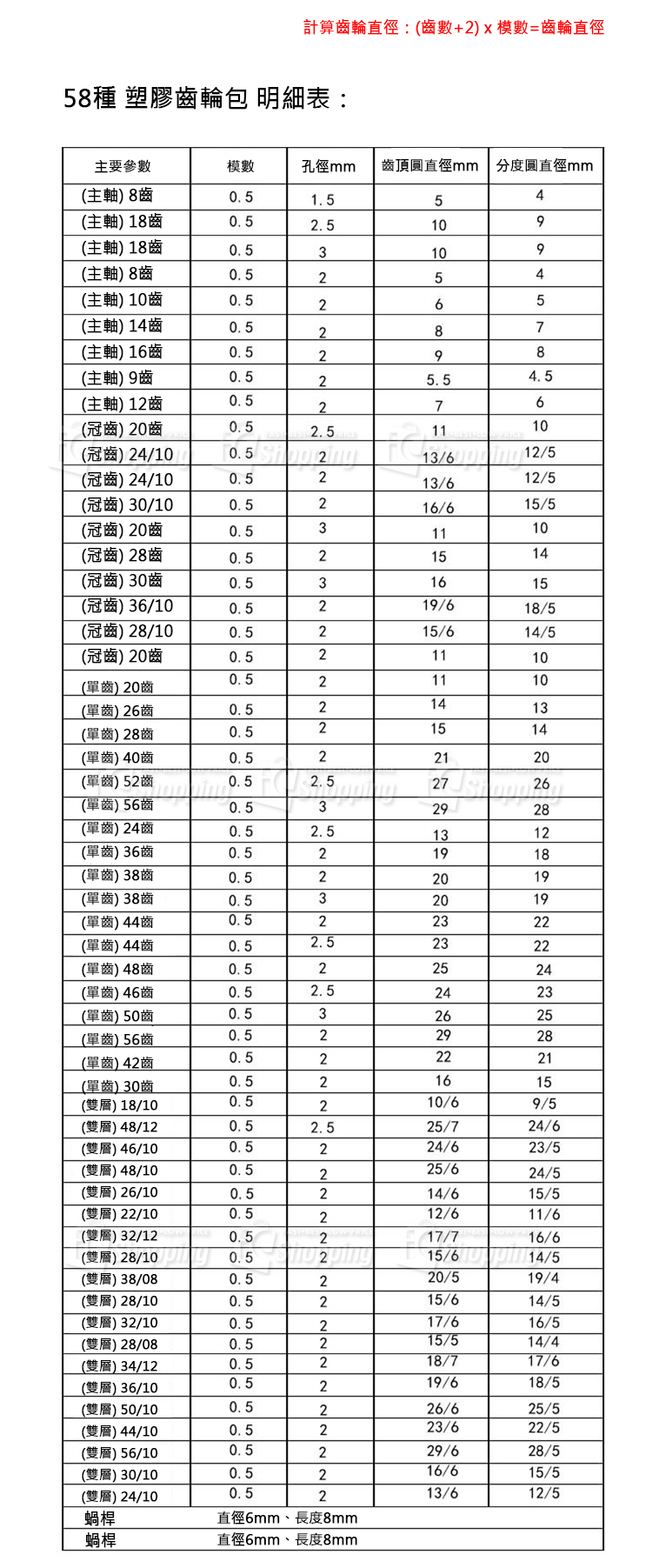 ※58種齒輪包裡不含傘齒輪,如有需要請單獨購買