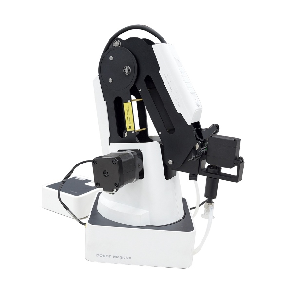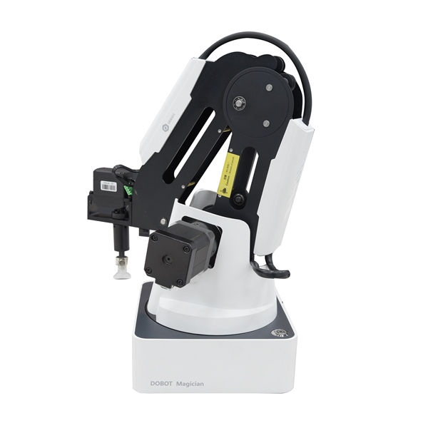 DOBOT魔術師是越疆科技自主研發的多功能高精度輕量型智慧實驗機械臂,是一站式STEAM教育綜合平臺,具備3D列印、鐳射雕刻、寫字畫畫等多種功能,預留13個拓展介面支援二次開發,使用者可以通過軟體程式設計結合硬體拓展來開發更多的應用場景,滿足不同年齡層次學生的需求。3D列印、鐳射雕刻、寫字畫畫、手持示教、多機控制……最前沿的玩法一個不落;自由設定動作、任意添加配件,一隻手臂玩轉創意無限!