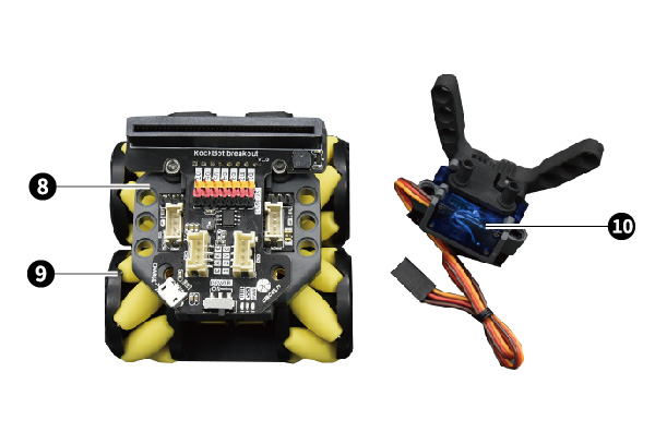●底座上提供了兩個舵機介面。此外,還有兩個Grove相容的I2C介面,以便於擴展其他模組。