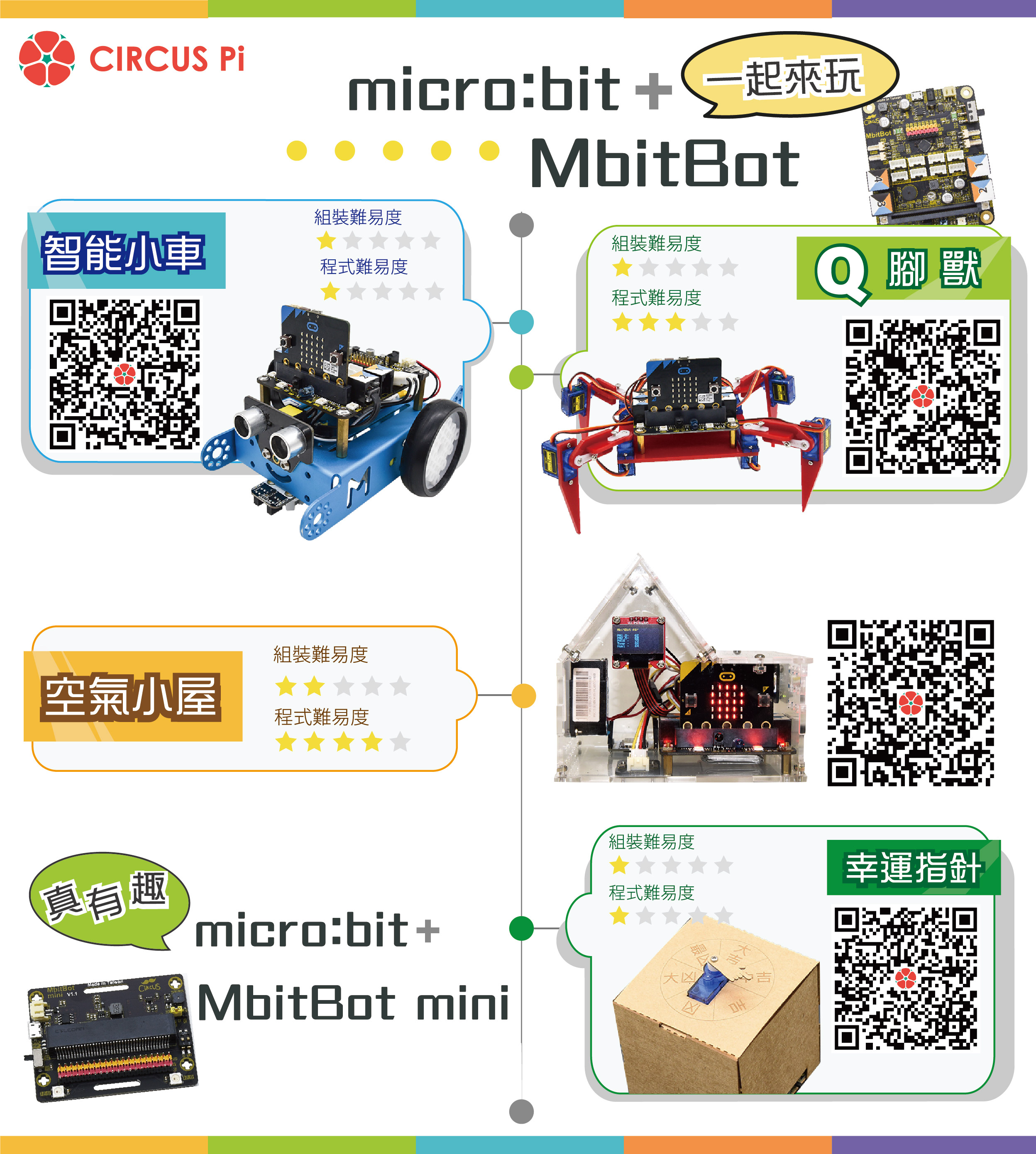 專為連接mBot及micro:bit而生的專業擴展板。將mBot更換成MbitBot之主板,連接micro:bit後,不僅可沿用原Makeblock sensor,更能加裝Arduino模組。