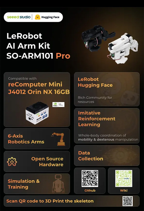 專為STEAM學習設計的AI機器手臂DIY套件【SO-ARM101】,支援主從控制概念,透過「主控臂 × 從動臂」設計,模擬真實機械臂運作。搭配LeRobot控制平台,讓孩子實作中學會機械結構、運動傳導與控制邏輯。適合學校教學、科學實驗、創客課程或親子共玩,從動手到動腦,一套搞定!
