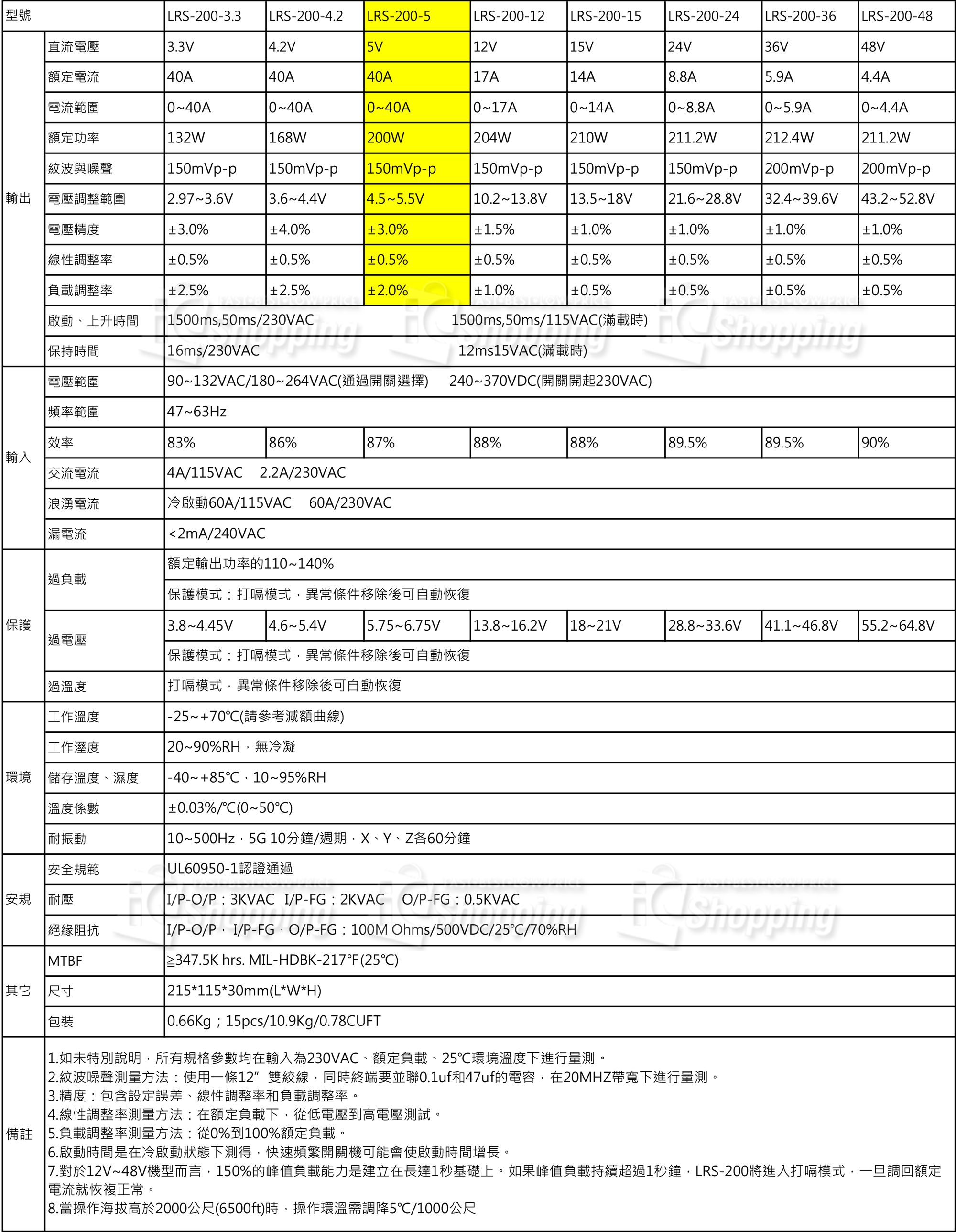 除了效率高達90%,金屬網外殼的設計加強了散熱能力使LRS-200在沒有風扇的情況下工作在-25℃到+70℃的溫度範圍內。具有極低的空載功耗(小於0.75W),能使終端系統很容易的通過國際能源要求。LRS-200有完整的保護功能和抗5G振動能力;它符合UL60950-1國際安全法規,LRS-200為各種工業應用提供了一個高性價比的解決方案。