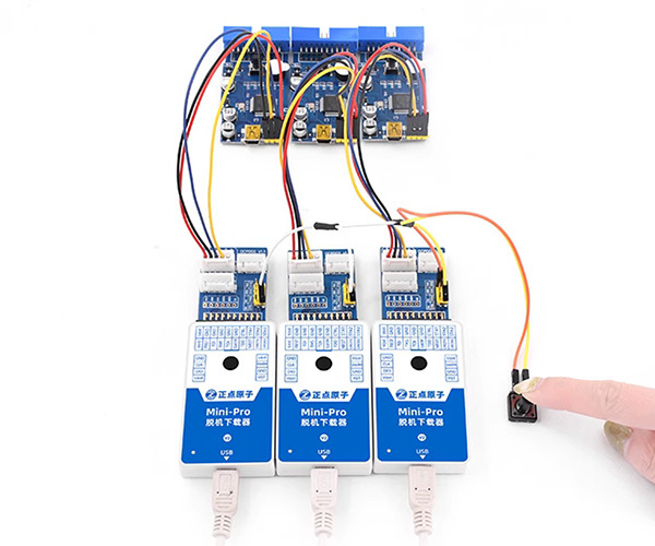 將多個Mini-Pro脫機下載器V2的CTRL引腳並聯到輕觸開關,可實現一鍵觸發多個Mini-Pro脫機下載器V2開始燒錄
