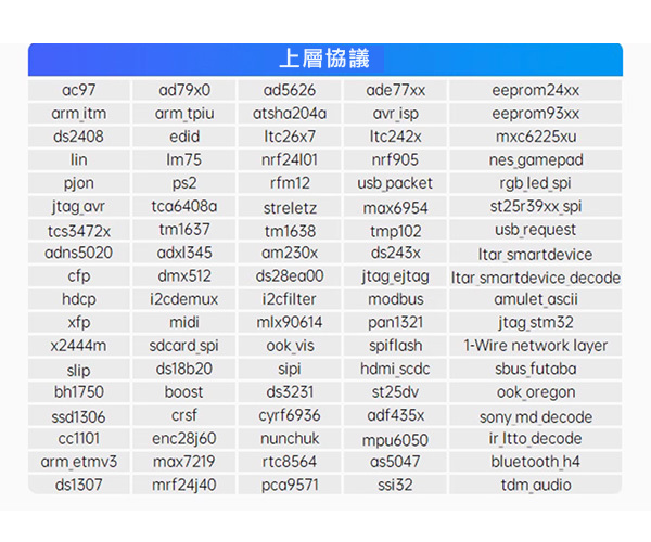 | 協議支援 | 170+(開放協議解碼庫,可自定義任何協議) |