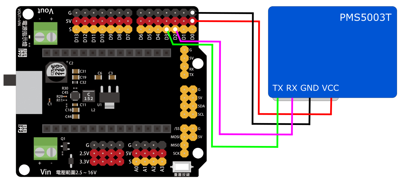 感測PM1.0/PM2.5/PM10/溫度與濕度。