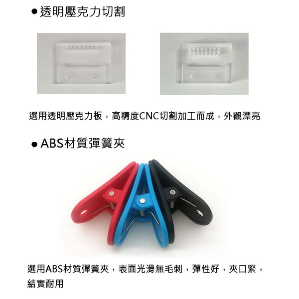 | 產品材質 | ABC彈簧夾+透明壓克力 |