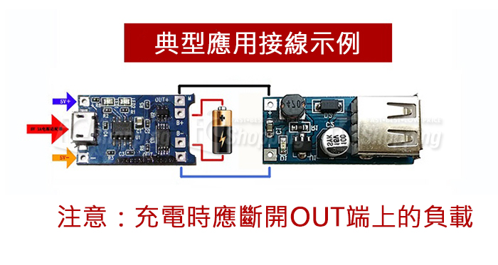 本模組用於單節鋰電或者多節並聯鋰電充電,充電埠可以從USB取電。