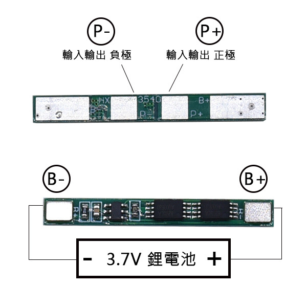 3A 3.7V鋰電池保護板主IC採用原裝進口元件。具有過充,過放,過流,短路等保護功能,用於各種容量各種形狀3.7V鋰電芯。採用保護IC,VISHAY、AOS、IR等高質量MOSFET,FR-4低溫度係數板材,設計精良,做工精細,測試全面。體積小巧,適合於許多要求高集成度、低成本的場合,可以滿足多方面的性能要求,保證電池組的絕對安全可靠。