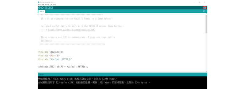 本範例使用之程式庫為 「 Adafruit_SHT31」,該程式庫已給定數位訊號腳位。