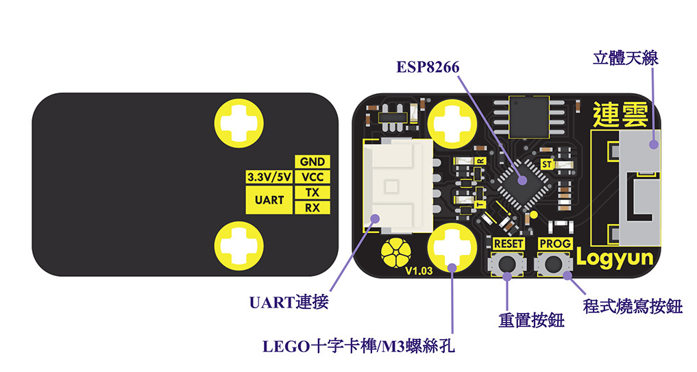 Logyun連雲是CIRCUS Pi 特別為在製作專案時,有 IoT 需求的使用者所打造的Wi-Fi 模組,商品內附教學程式範例micro:bit、Raspberry Pi Pico、Arduino UNO。簡單易懂的使用方式,具備與各種微控制器、微電腦良好的通用性,內建各項老師用於教學或學生製作專案常用的功能,加速使用者的開發。