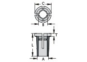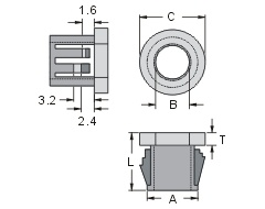 | 型 號 Item No. | 鐵板孔徑 Mounting Hole A | 最大出線孔 B | 覆蓋 C | 高度 L | T |