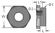 | 型 號 Item No. | 外螺紋規格 (鐵板孔徑) D1 | 內螺紋規格 (固定頭螺紋) D2 | 外螺紋長度 L | 內螺紋長度 L1 | 寬度 W | 顏 色 Color |