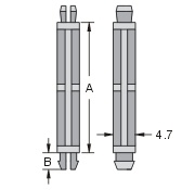 | 型 號 Item No. | 間距 A | B | 適用PCB板(上孔) | 適用基板(下孔) | ||