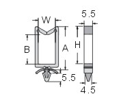 | H | A | B | W | 鑽孔 | 板厚 | |