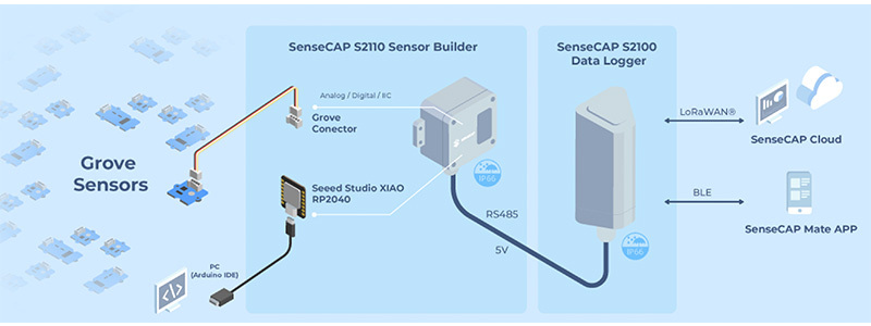 SenseCAP S2110 Sensor Builder 是一款開源工具,用於建立基於 Grove 感測器的 RS485 感測器。它還支援開發人員建構客製化的工業級 LoRaWAN 感測器,並透過 SenseCAP 數據記錄器連接到 SenseCAP 雲端平台。