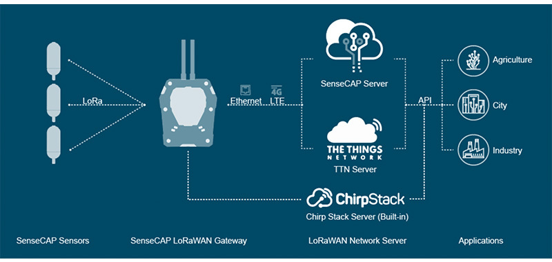 SenseCAP Gateway - LoRaWAN 基於 LoRaWAN 協議,適用於低功耗、遠距離環境資料收集和遠端監控場景,例如智慧農業和智慧城市。