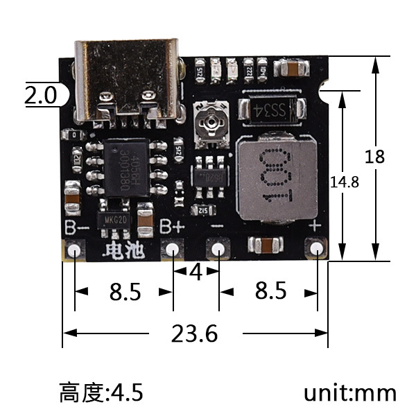 電池可選擇3.7V鋰電池,充滿電壓4.2V,電池類型可以為18650、聚合物等電池